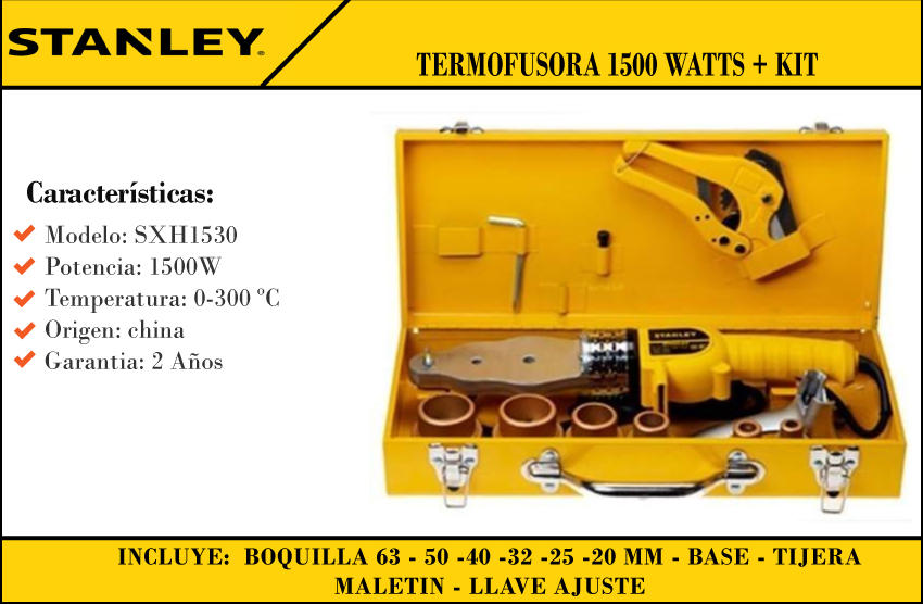 Stanley - Termofusora 1500 W + 6 Boquillas - Tijera - Maletin