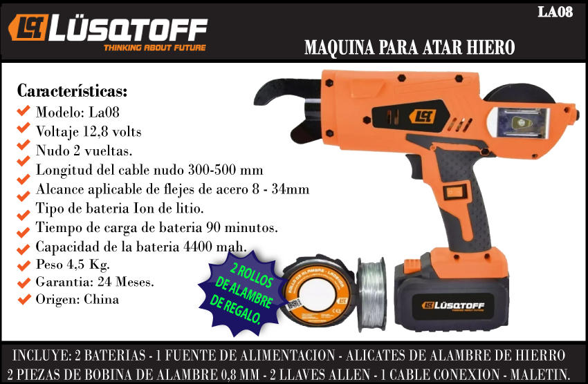 Lusqtoff Atadora De Alambre Para Hierro A Bateria + 2 Rollos