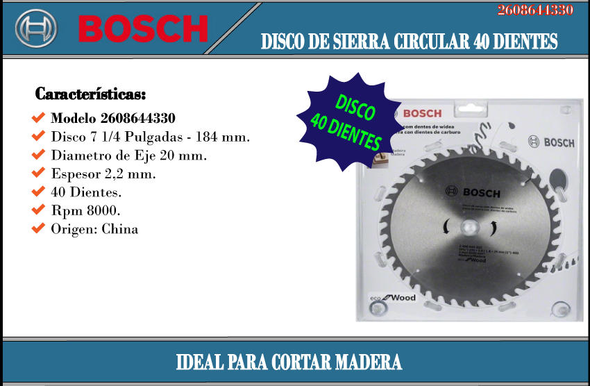 Bosch Disco Sierra Circular Madera Eco 7 1/4 (184mm) 40d 644.330