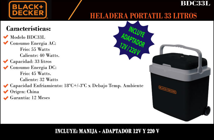 Black & Decker Heladera 12v Y 220v 33 Lst Frio/calor Carry-on