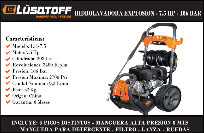 Lusqtoff Hidrolavadora A Explosion 7.5 Hp 186 Bar