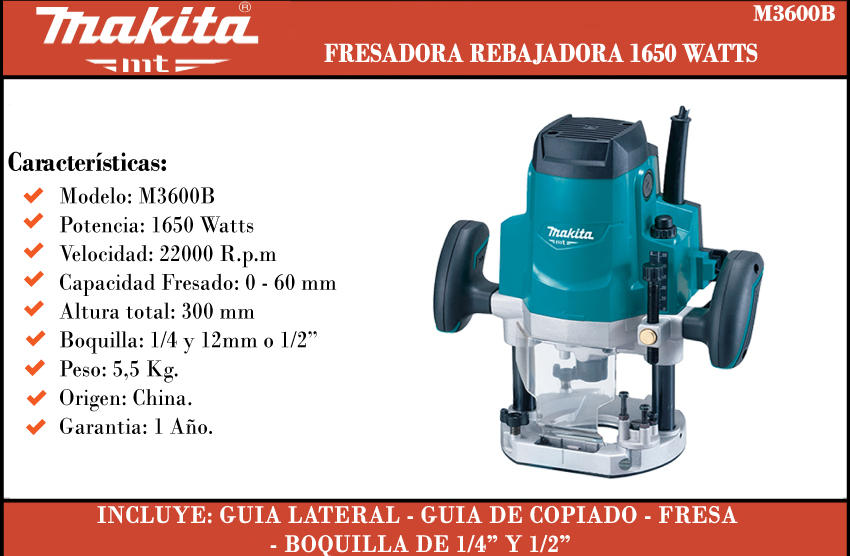 Makita Fresadora Mt 1650 W Boquilla 1/2" Y 1/4"