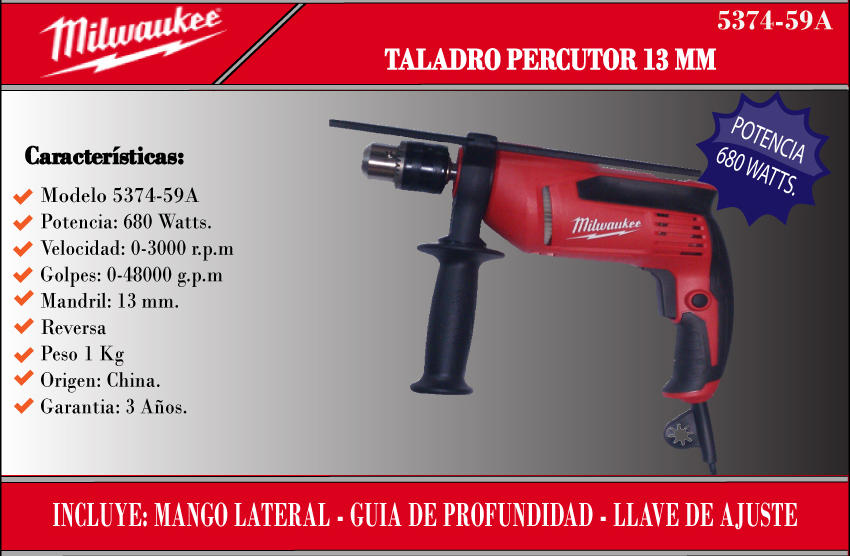 Milwaukee Taladro Percutor 13mm 680 Watts