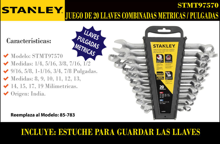 Stanley Set 20 Piezas Llave Combinada Pulgadas Y Metricas