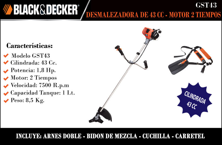 Black & Decker Desmalezadora Comb. 2tiem. 1,8hp 43cc