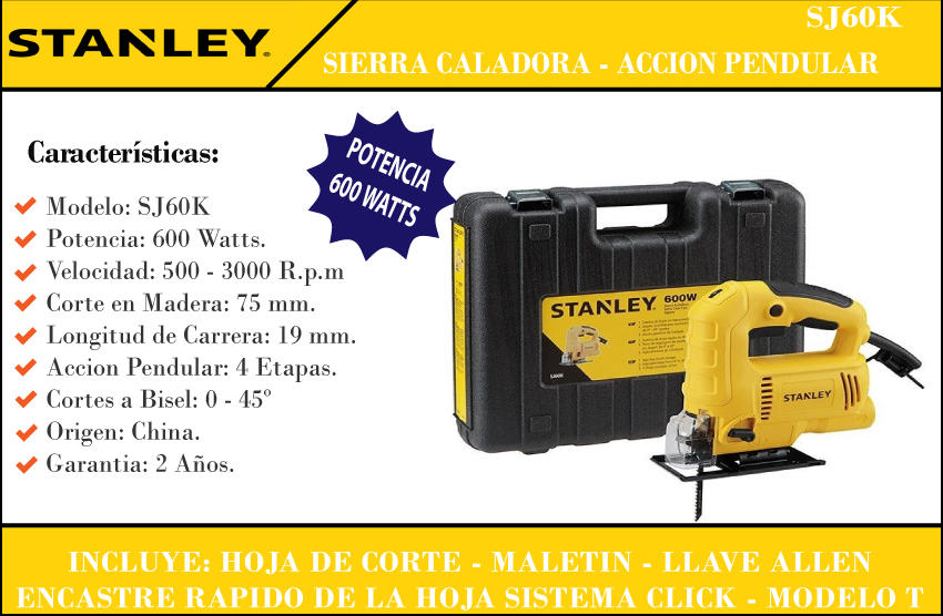 Stanley Sierra Caladora 600w Accion Pendular + Maletin