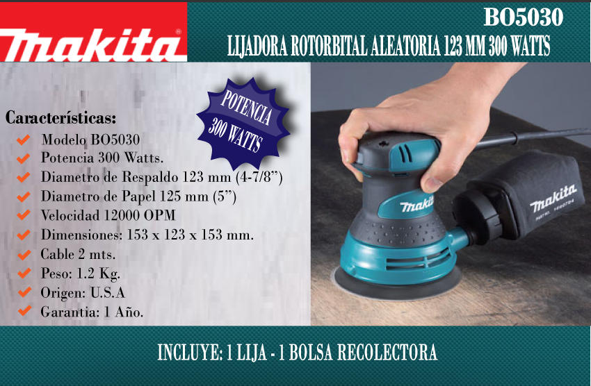 Makita Lijadora Roto-orbital 5" Ext. Polvo 300w