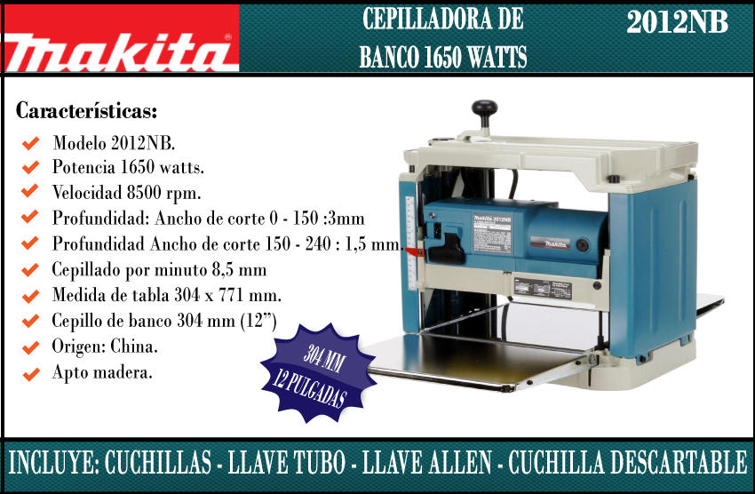 Makita Cepilladora De Banco Portatil 1650w