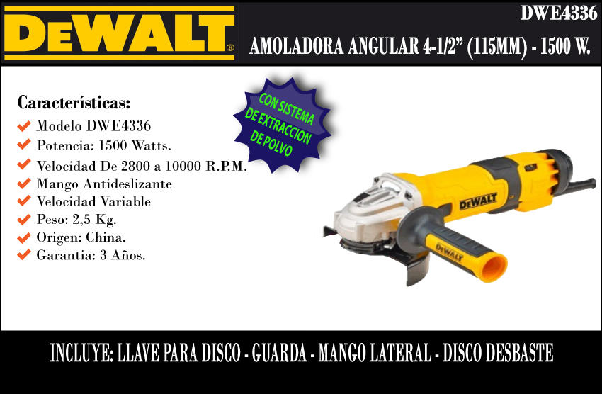 Dewalt Amoladora 115mm 1500w V. Var. Y Arr. Prog. 11000rpm Rrpp