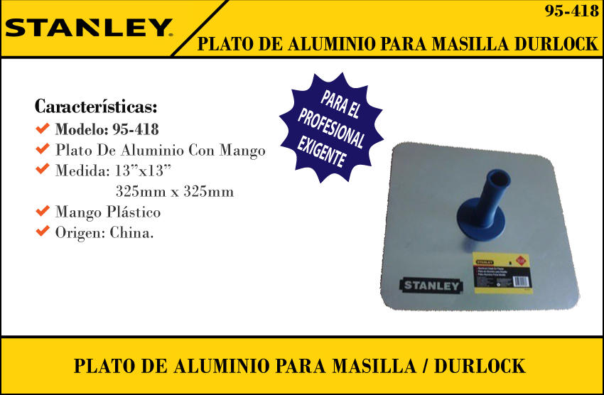 Stanley - Durlock Plato Mezcla Masilla 325 X 325