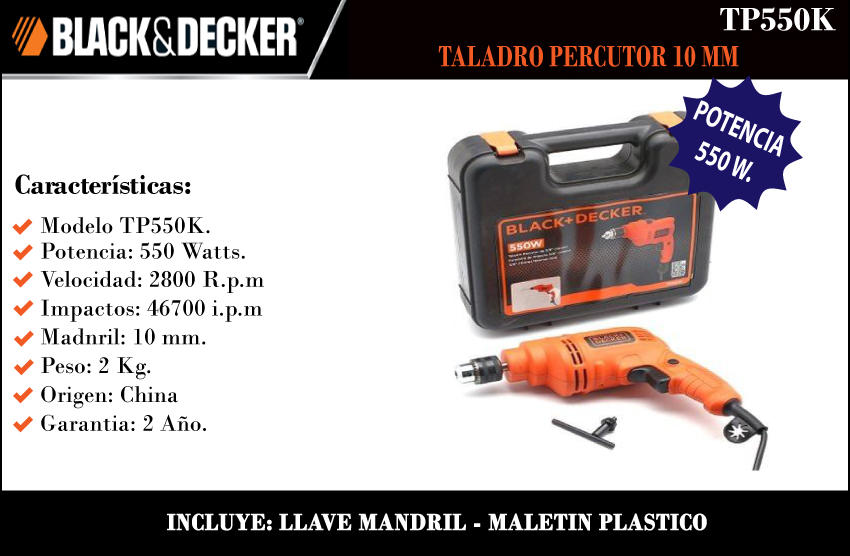 Black & Decker Taladro 10mm 550w Per (tb550k) Maleta