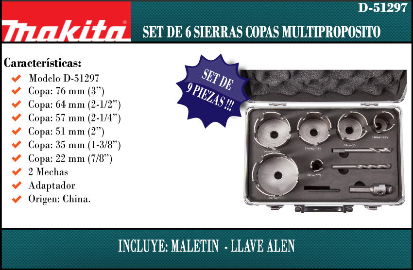 Makita Set 9 Piezas Sierra Copa Multiproposito Milimetricas - Maletin