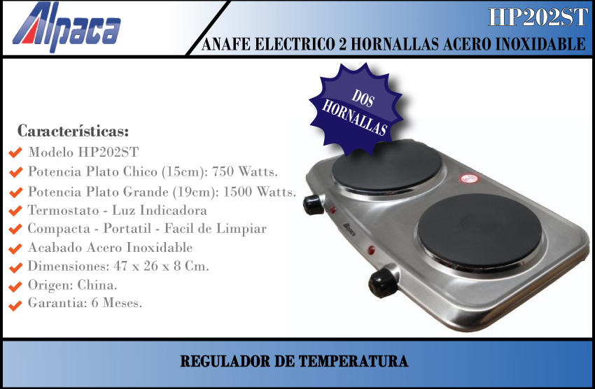 Anafe 2 Hornalla 2000w Electrico Negro