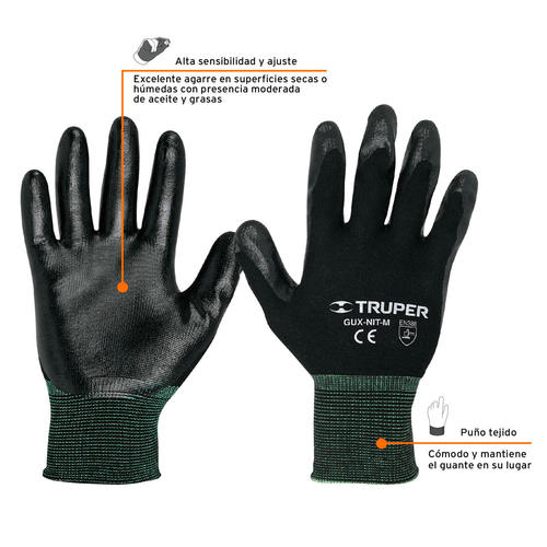 Truper Guante Tejido Recubiertos De Nitrilo Alta Sensibilidad Talle 7 - Small