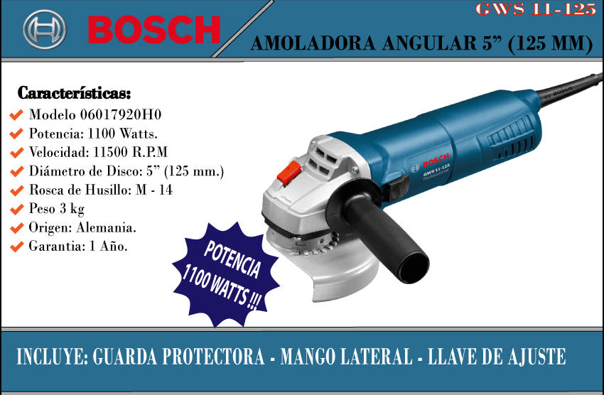Bosch Amoladora 125 Mm 5" Gws 11-125 1100w