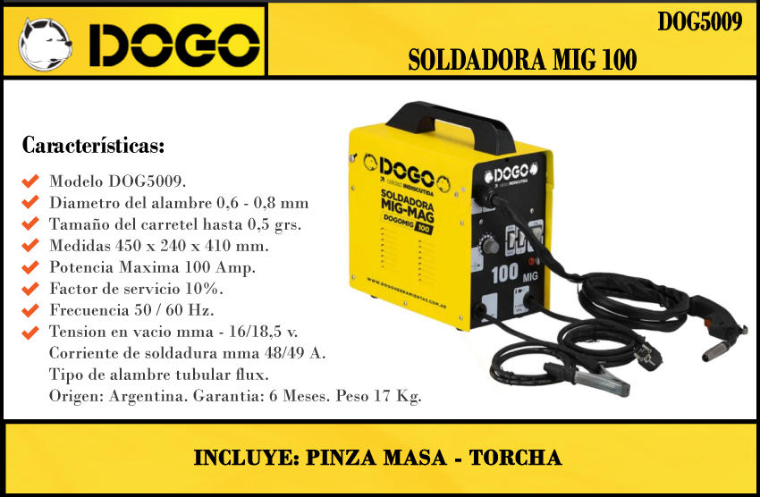 Dogo Soldadora Mig 100 A Mma Alambre Flux + Torcha