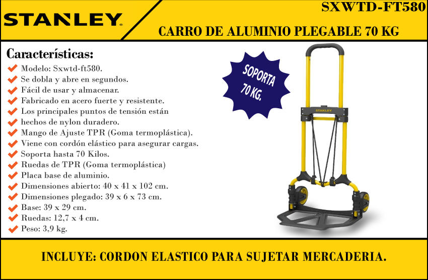 Stanley Carro De Aluminio Plegable 70 Kg