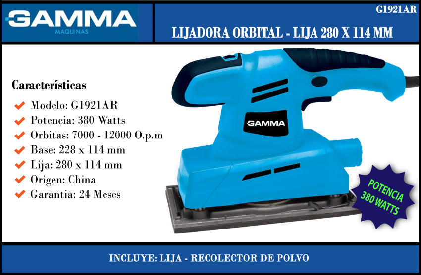 Gamma Lijadora Orbital 380w 1/2" Lija 275 X 115 Con Bolsa Recolectora (hg031)