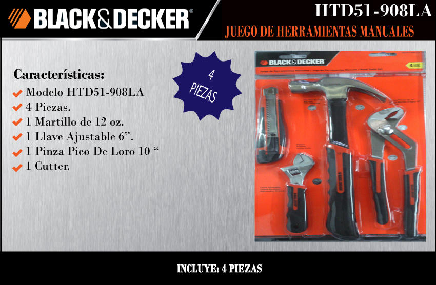Black & Decker Set 4 Piezas Herramientas Manuales (hdt51-908)