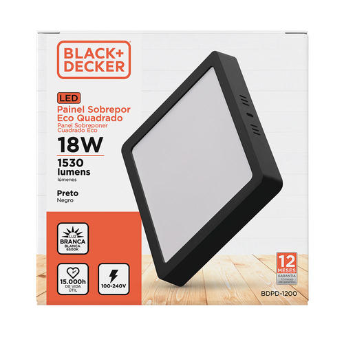 Panel Led Cuadrado Aplicar 18w Luz Fria (negro) Black+decker
