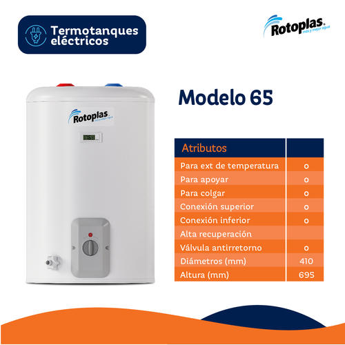 Termotanque Rotoplas 65 Lts Electrico Carga Inferior Y Superior E-ter65