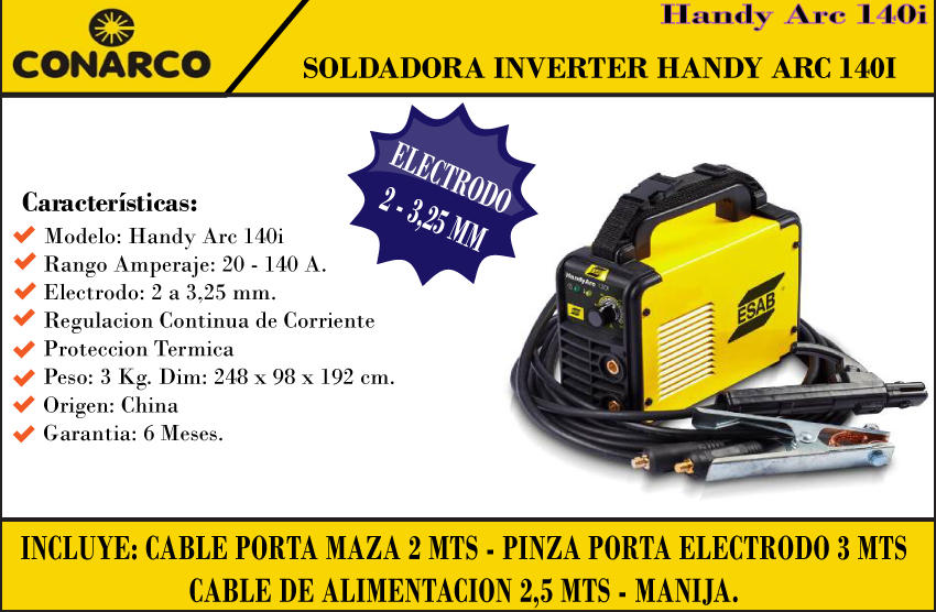 Conarco Soldadora Inverter 142 Amp Esab Handy Arc