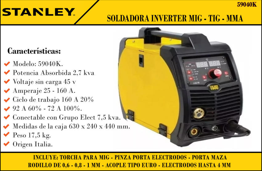 Stanley - Soldadora Inverter 160 Amp Mig 1800