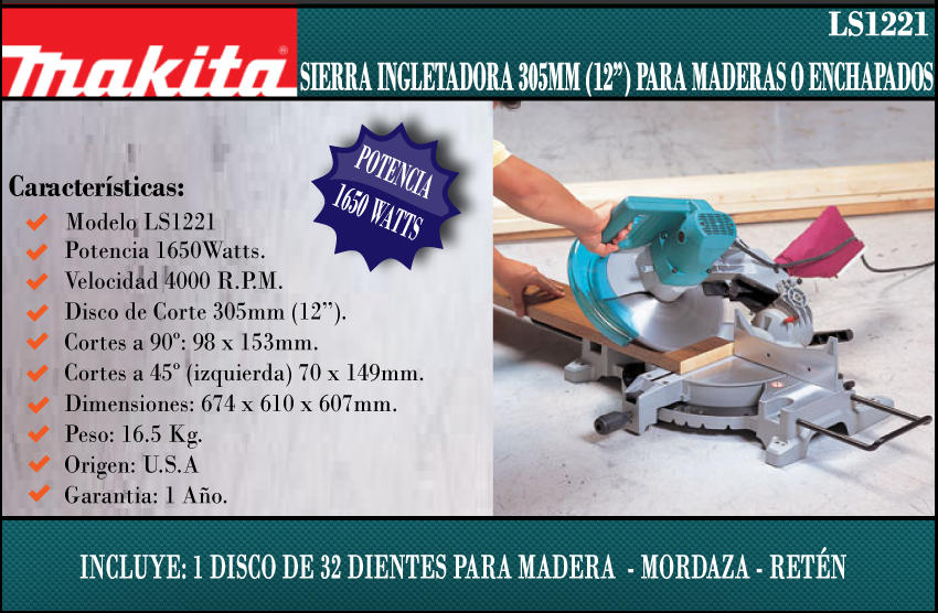 Makita Sierra Ingletadora 12" 1650w 305mm