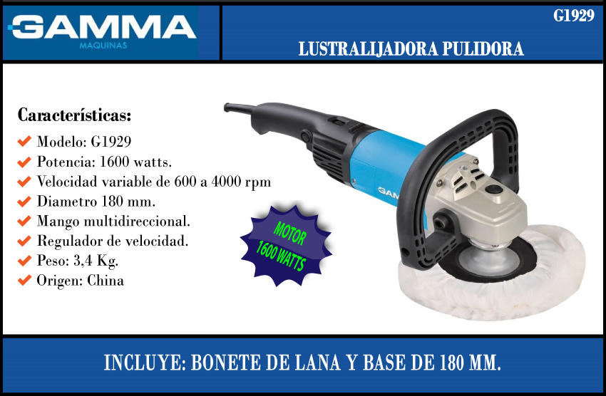 Gamma Lustralijadora 1200 Watts 180mm 600-3500rpm