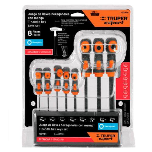 Truper Set 8 Piezas Llaves "t" Allen Largas Pulgadas Punta Bola