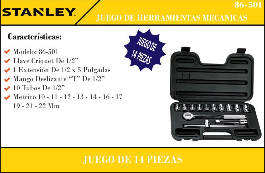 Stanley Set 14 Pzas Bocallaves Mm 1/2"- 86-501