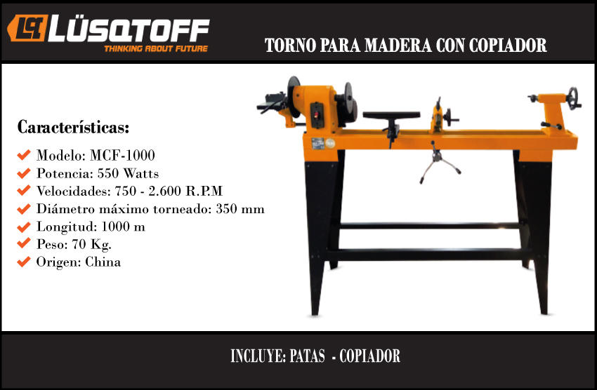 Lusqtoff Torno Para Madera 1 Mts. Con Copiador 550 W