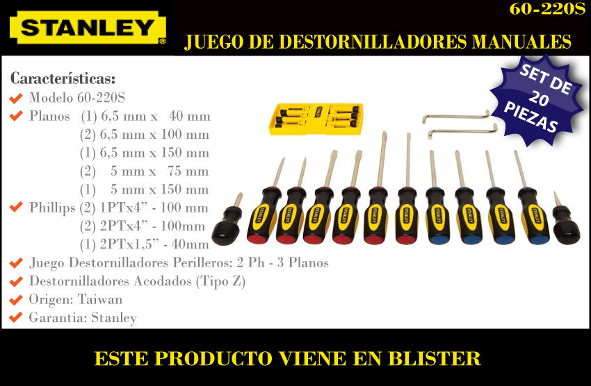Stanley Set 20 Piezas Destornillador Philips Y Planos