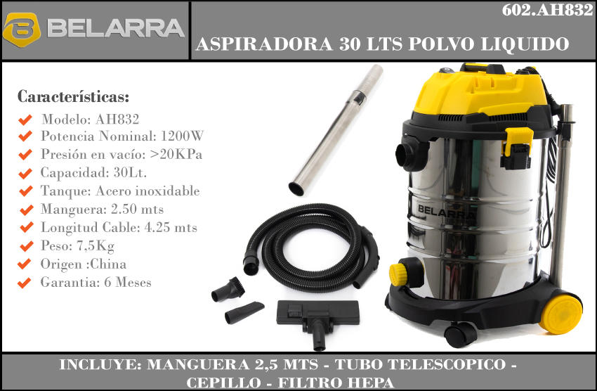 Belarra Aspiradora 30 Lt 1200 W Polvo Liquido