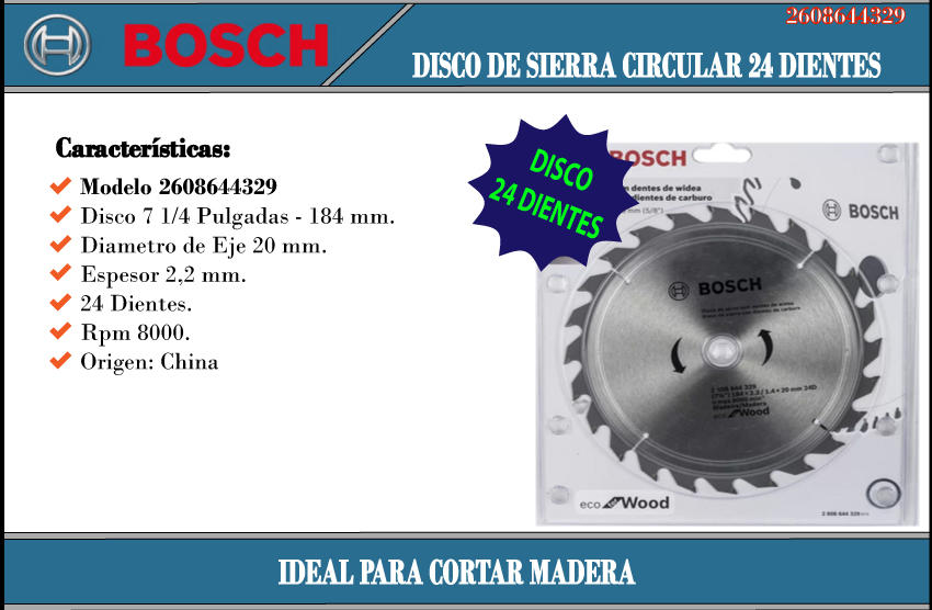 Bosch Disco Sierra Circular Madera Eco 7 1/4 (184mm) 24d 644.329
