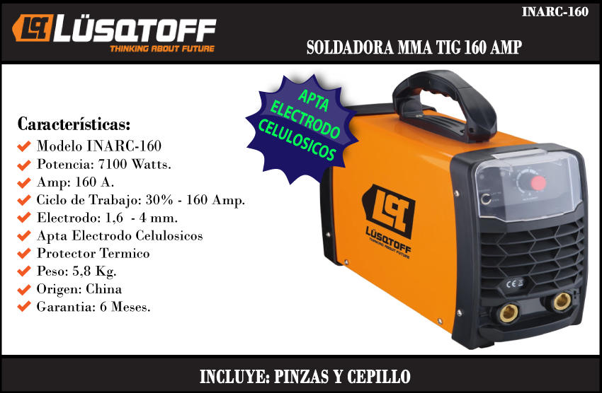 Lusqtoff Soldadora Inverter 160 Amp Apto Celulosico Y Basico