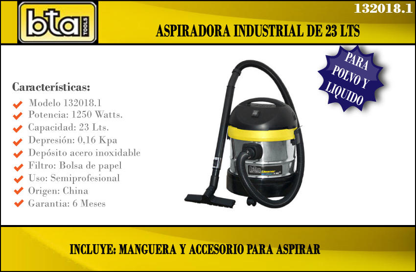 Bta Aspiradora Industrial 23 Lt Inox Plovo/liquido