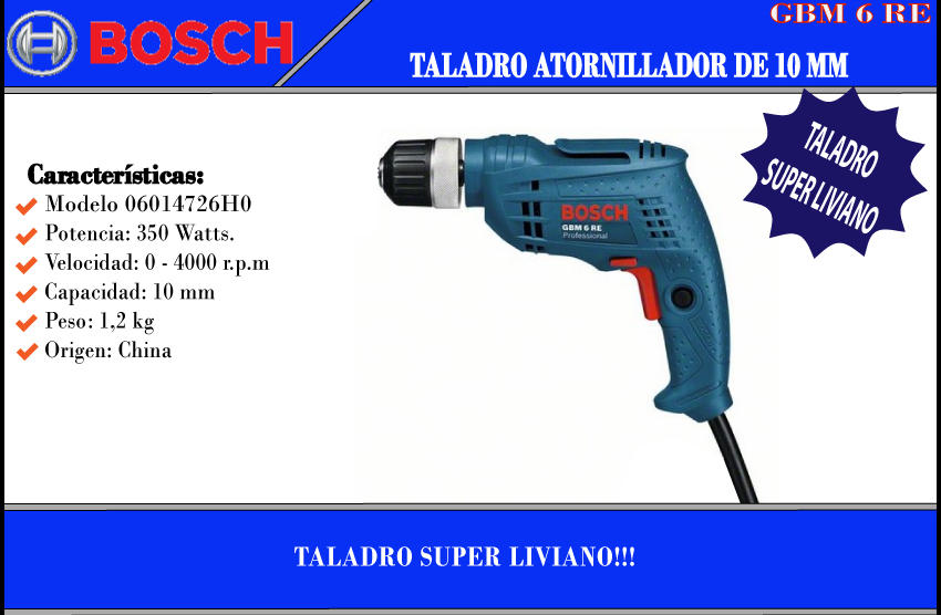 Bosch Taladro 10 Mm Sin Percutor 350w Gbm 6 Re
