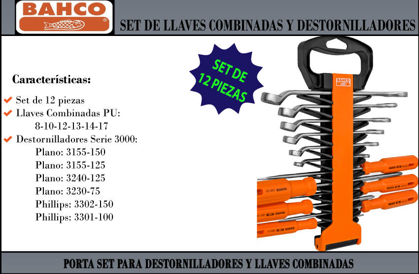 Bahco Set 6 Destornilladores + 6 Llaves Combinadas + Soporte