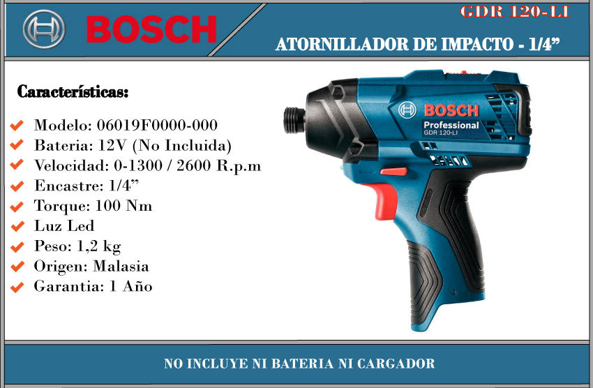 Bosch Atornillador De Impacto 1/4 12v Gdr120-li (sin Bateria - Sin Cargador)