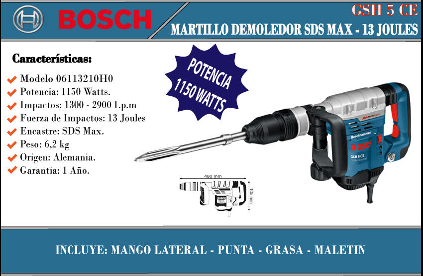 Bosch Martillo Demoledor 1150w Sds Max Gsh 5 Ce 8,3j Aleman