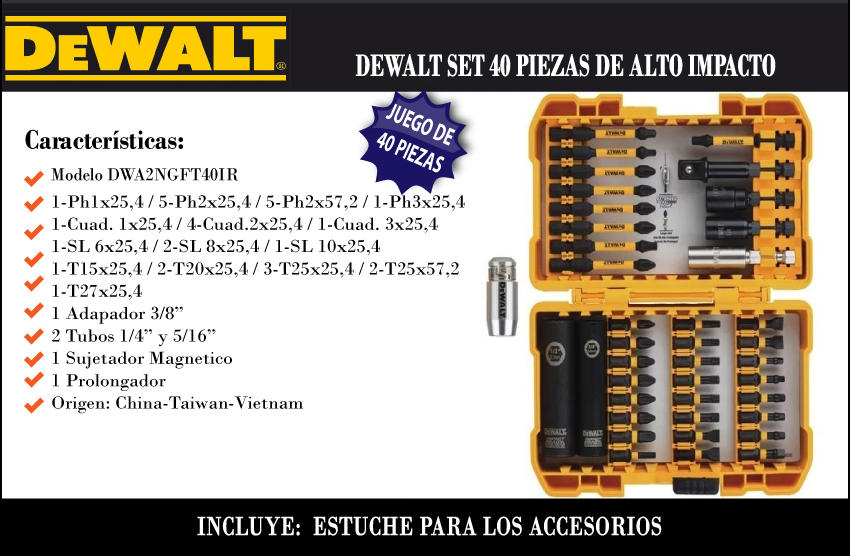 Dewalt Set 40 Pzas Alto Impacto Puntas Y Boquillas