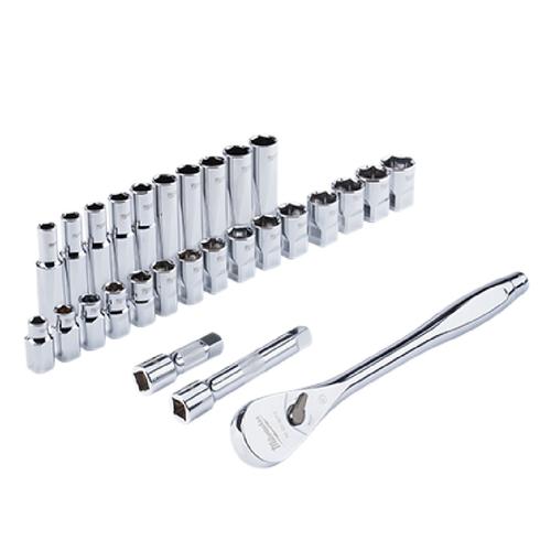 Milwaukee Set 28 Piezas Tubos Milimetricos - Llave Crique 1/2 + Maletin