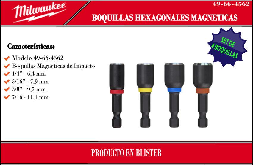 Milwaukee Set 4 Tubo Magnetico Hexagonal