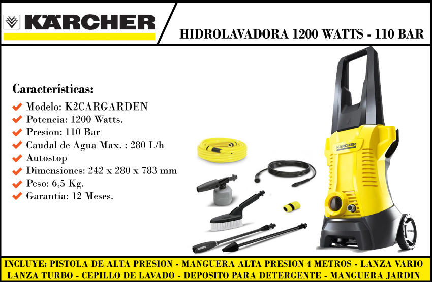 Karcher Hidrolavadora 1200 W 110 Bar + Accesorios