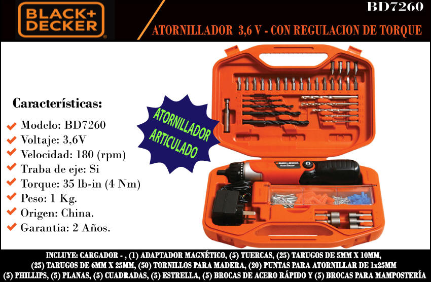 Black & Decker Atornillador 3.6v Articul + Acces.