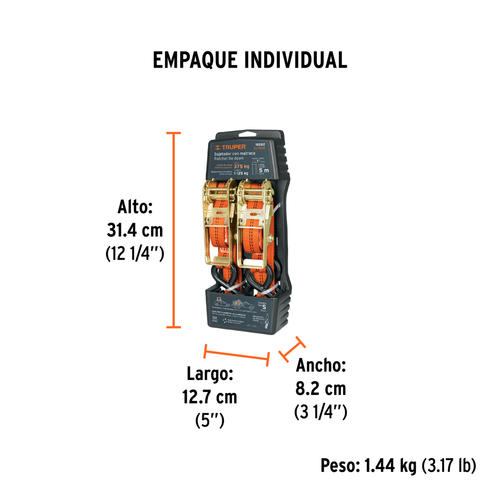 Truper Cinta Sujecion Carga 25mm 4mt. Car. Max 1125 Kg (par)