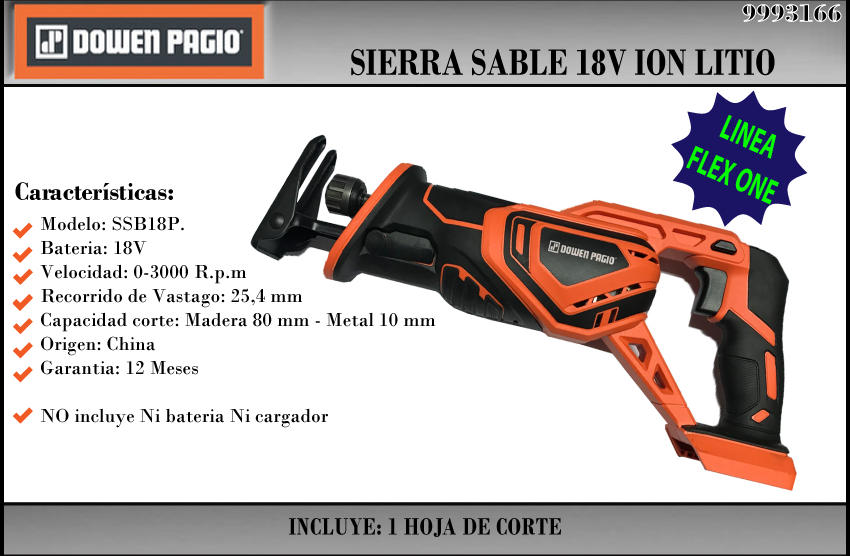 Dowen Pagio Sierra Sable 18v (sin Bateria - Sin Cargador) - Flex One