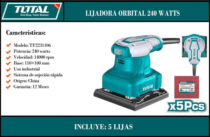Total Lijadora De Palma Orbital 240 W Industrial