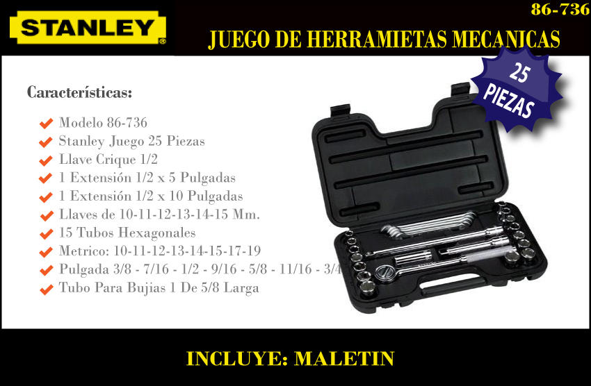 Stanley Set 25 Pzas Bocallaves Wkm 1/2"- (milm) 86-736